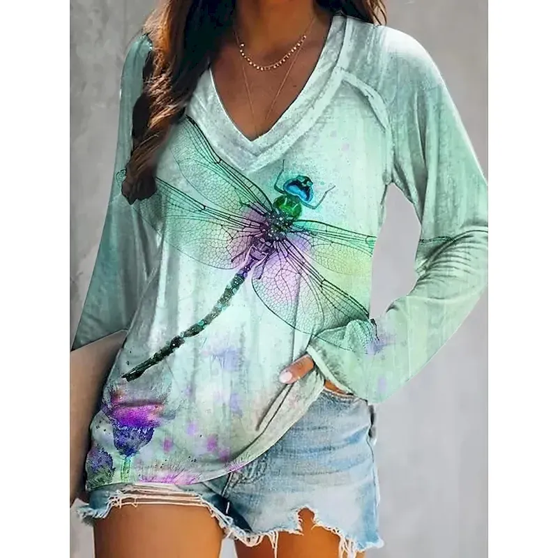 Women’s T shirt Long Sleeve V Neck Long Sleeve Graphic Casual Geometry Vintage Stylish Classic Regular Tops Daily Weekend Print Light Green Pink Blue Orange Green Spring Fall Prefall