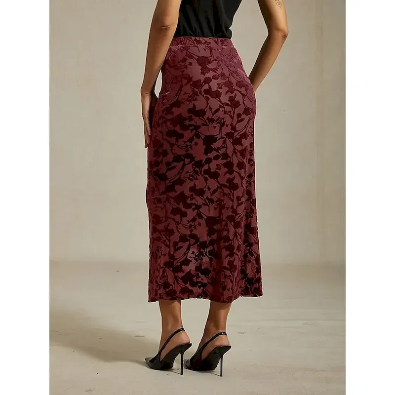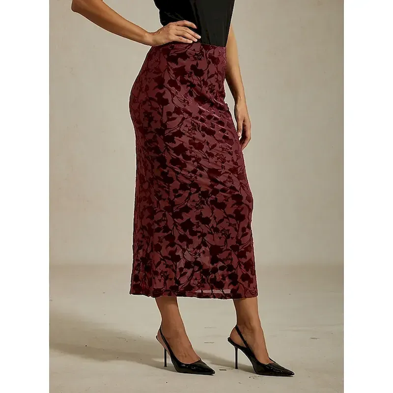 Women’s Skirt Trumpet / Mermaid Elegant Vintage Maxi High Waist Skirts Stretchy Wine Spring Velvet