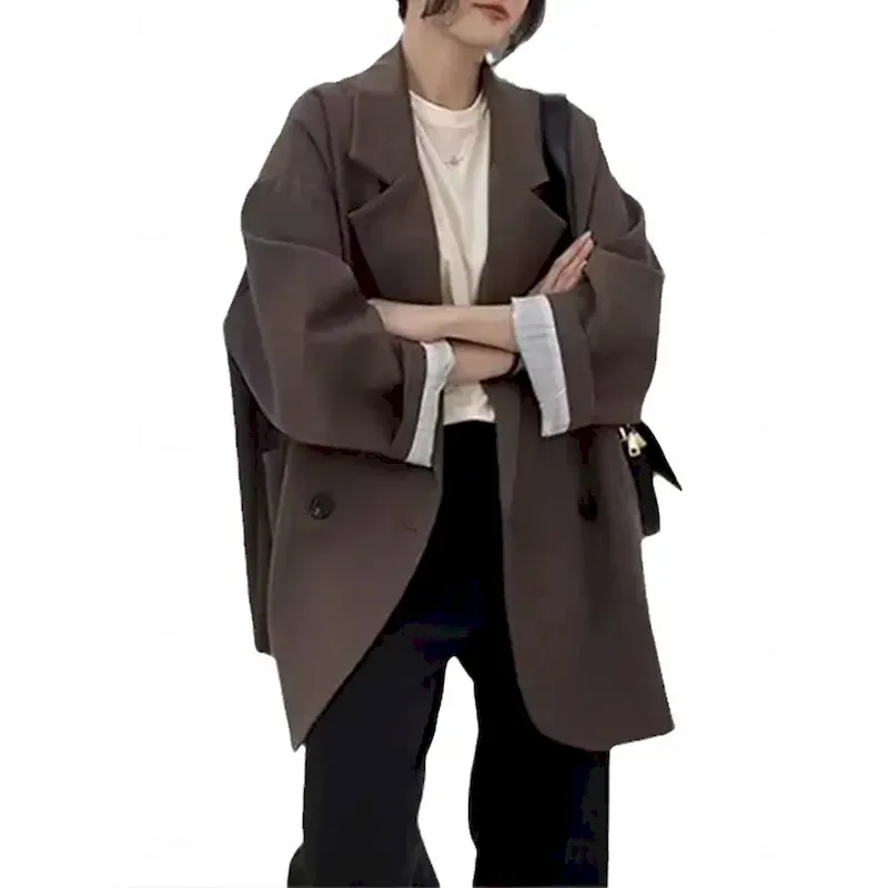 Women’s Blazer Breathable Comfortable Patchwork Pocket Daily Modern Solid Color Work Casual Daily Regular Turndown Regular Fit Long Sleeve Outerwear Black Ivory Brown Fall Winter