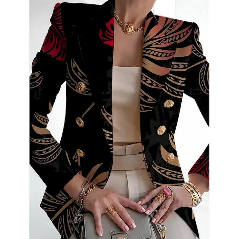 Women’s Blazer Comfortable Breathable Pocket Print Fashion Casual Geometric Office Street Casual Daily Wear Double Breasted Regular Turndown Slim Long Sleeve Outerwear Black White Red Summer Spring