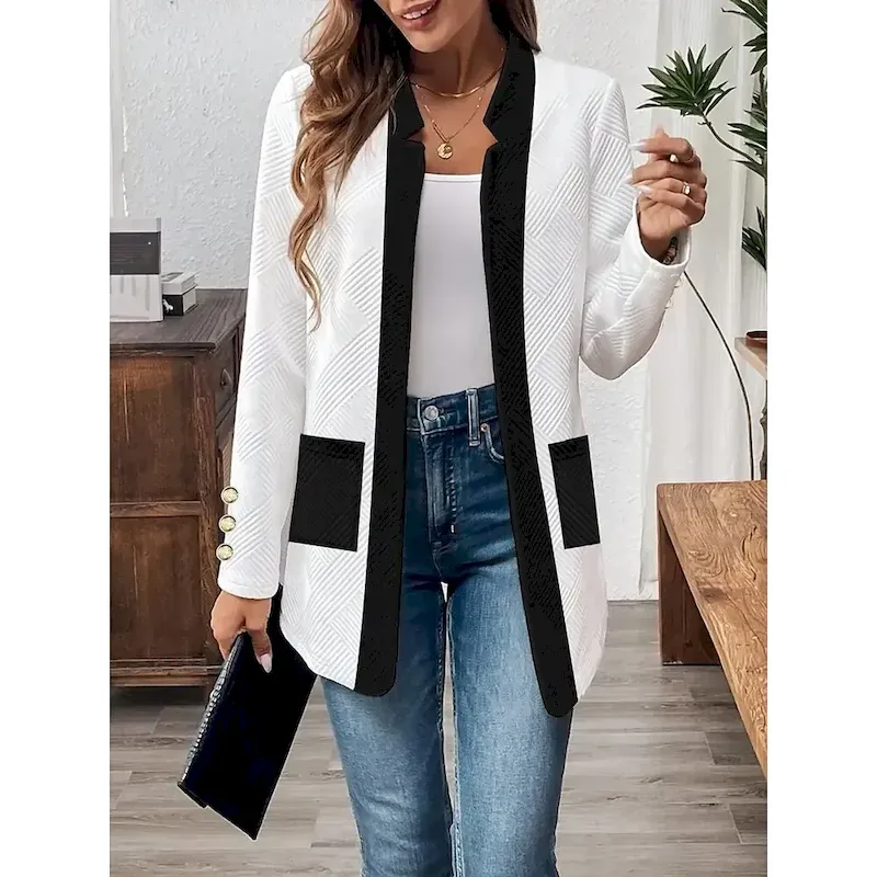 Specifications Gender:Women’sOuterwear Type:BlazerOccasion:Weekend,Casual Daily,Going outSeason:Fall,SpringFunction:ComfortableFabric:PolyesterPlacket:CardiganStyle:Outdoor,Fashion,ElegantOuterwear Length:RegularPattern:PlainDesign:Buttons,PocketNeckline:LapelSleeve Length:Long SleeveFit Type:Regular FitLook After Me:Wet and Dry Cleaning,Washable,OK