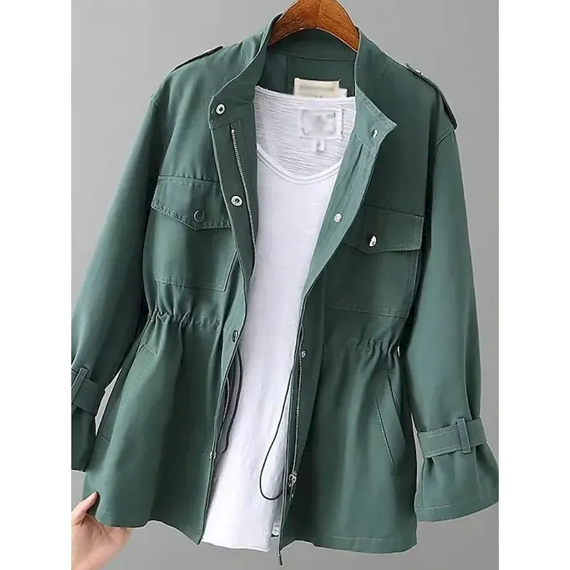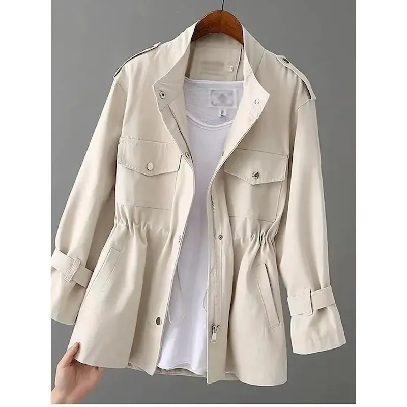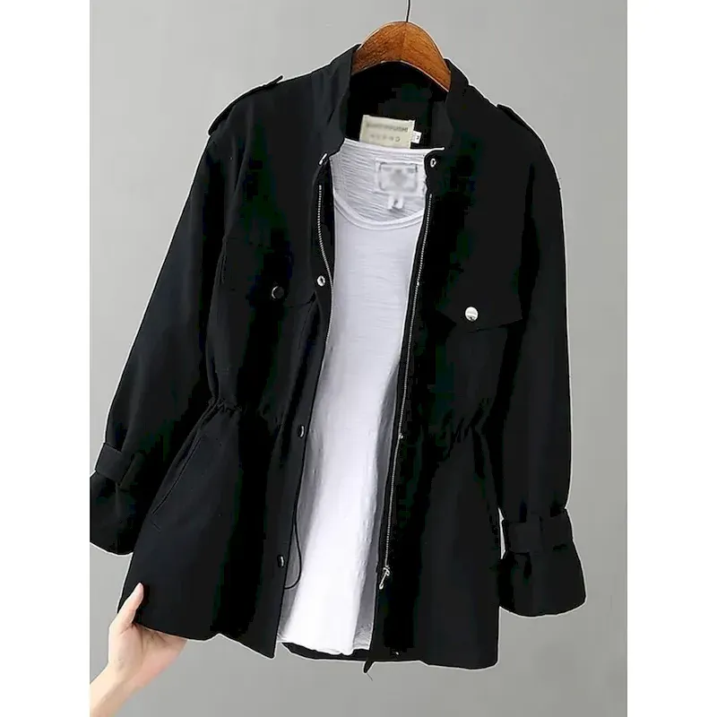 Women’s Casual Jacket Comfortable Breathable Pocket Buttons Casual Plain Vacation Street Casual Daily Wear Single Breasted Regular Stand Collar Regular Fit Long Sleeve Outerwear Black White Spring