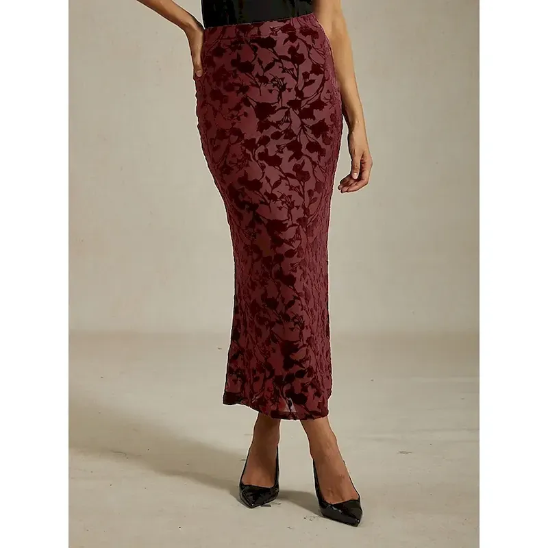 Women’s Skirt Trumpet / Mermaid Elegant Vintage Maxi High Waist Skirts Stretchy Wine Spring Velvet